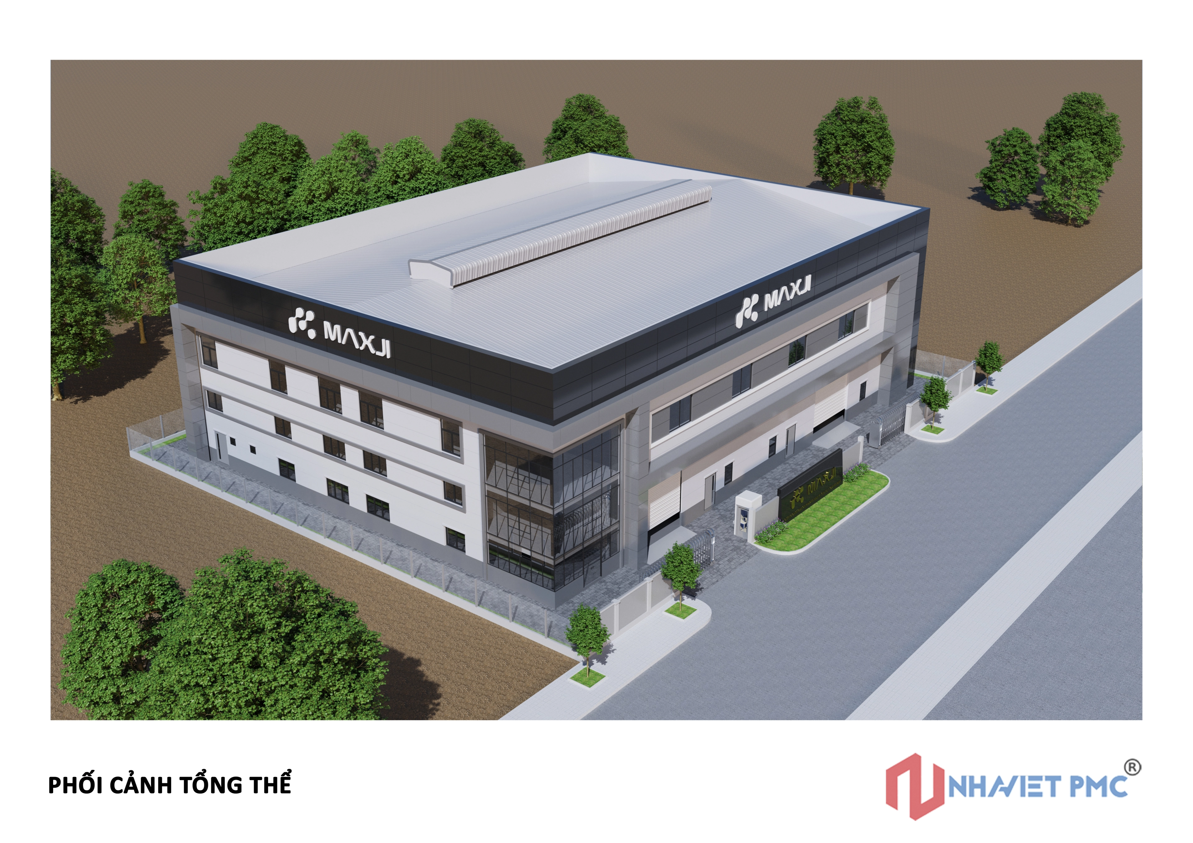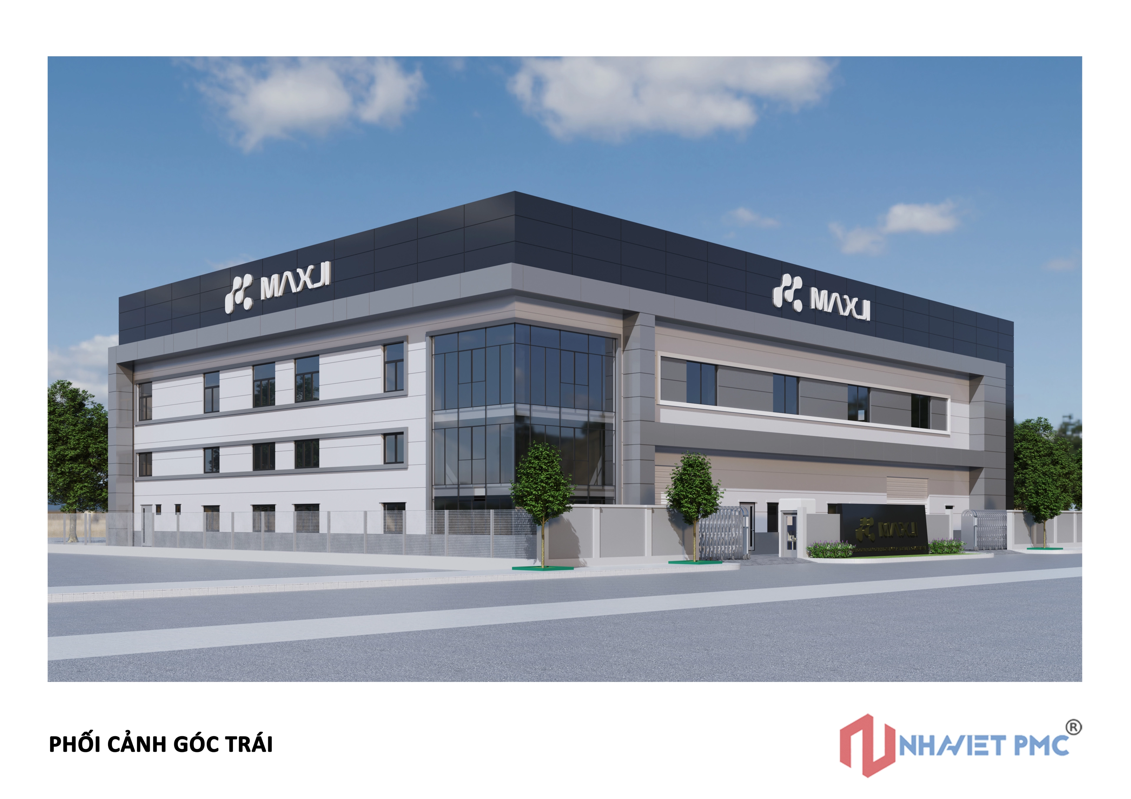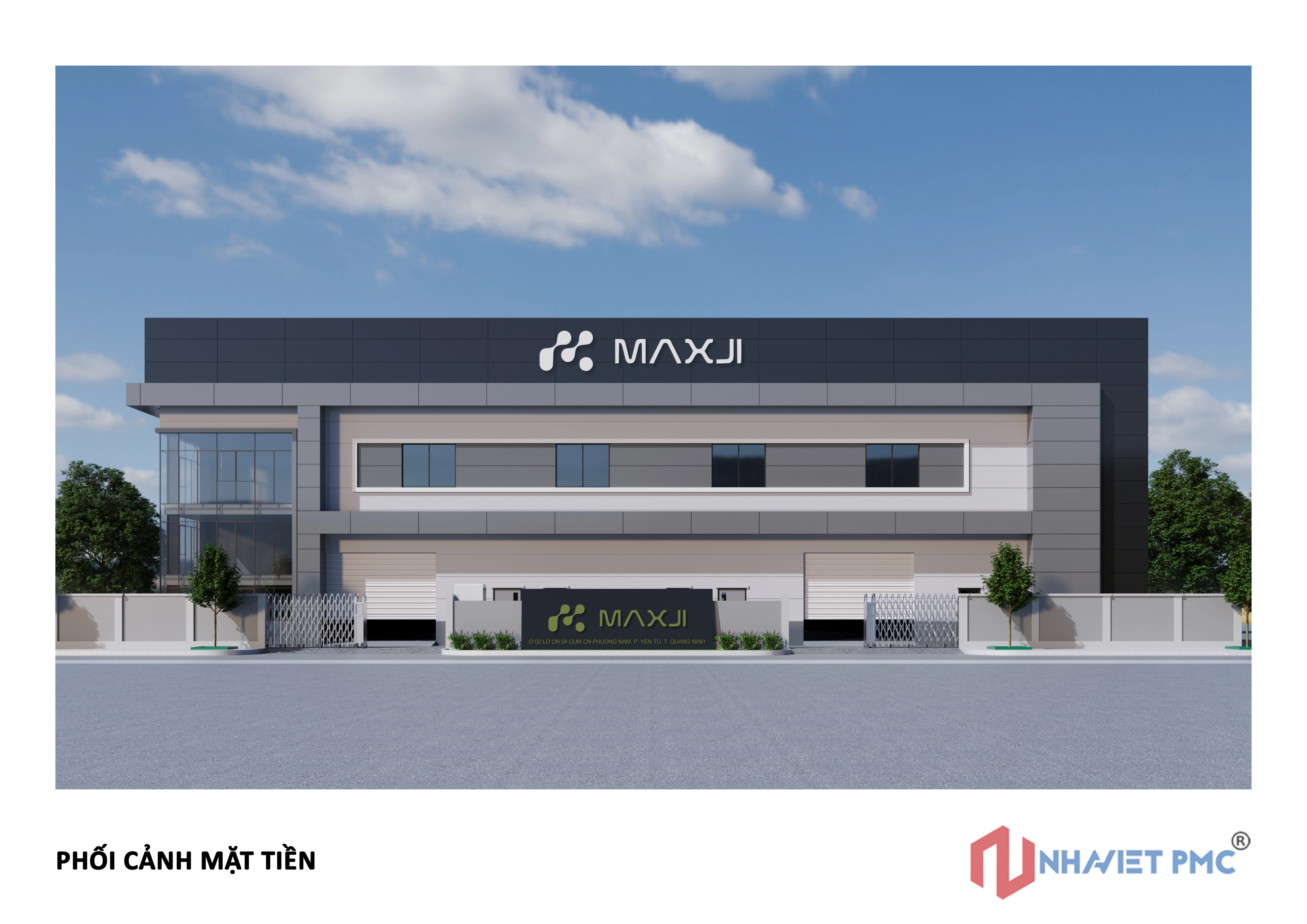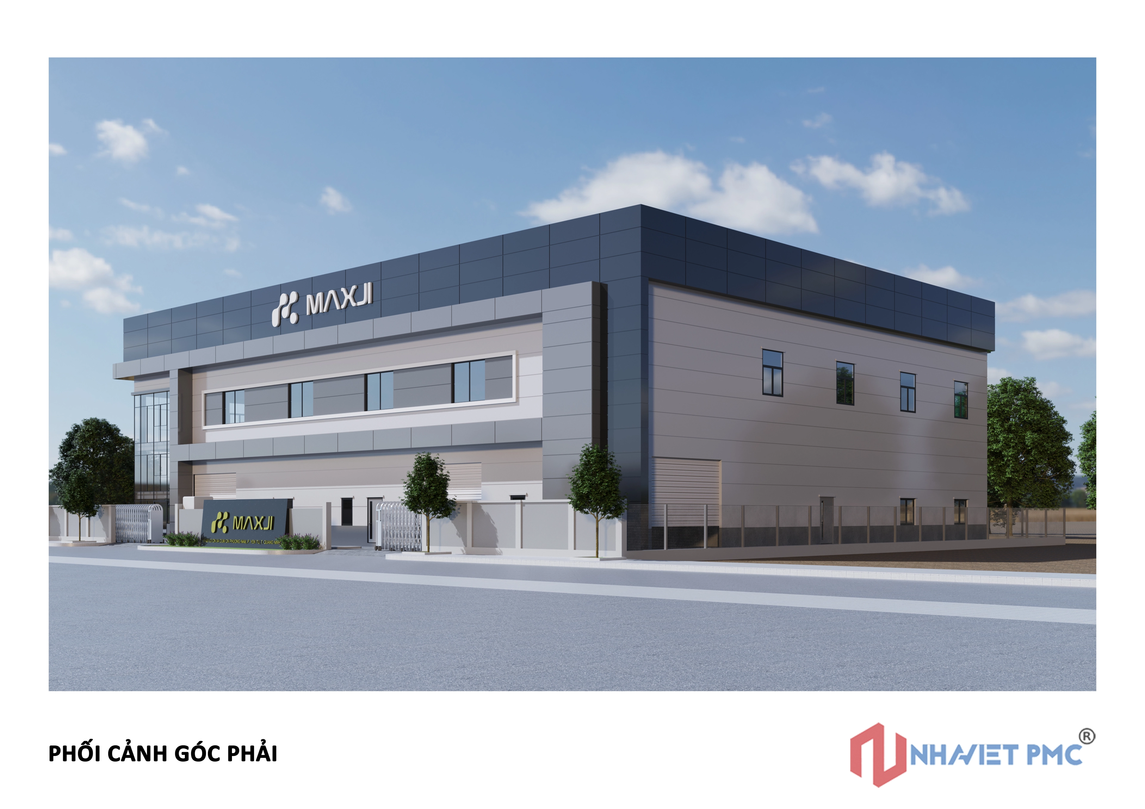 Công trình được tổ chức theo hình khối rõ ràng, tỷ lệ chặt chẽ, thể hiện đúng tinh thần của một nhà máy sản xuất hiện đại: